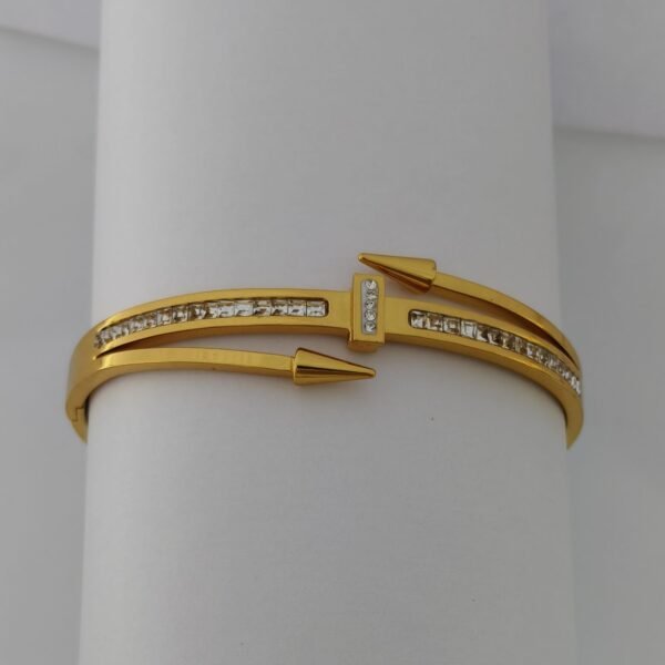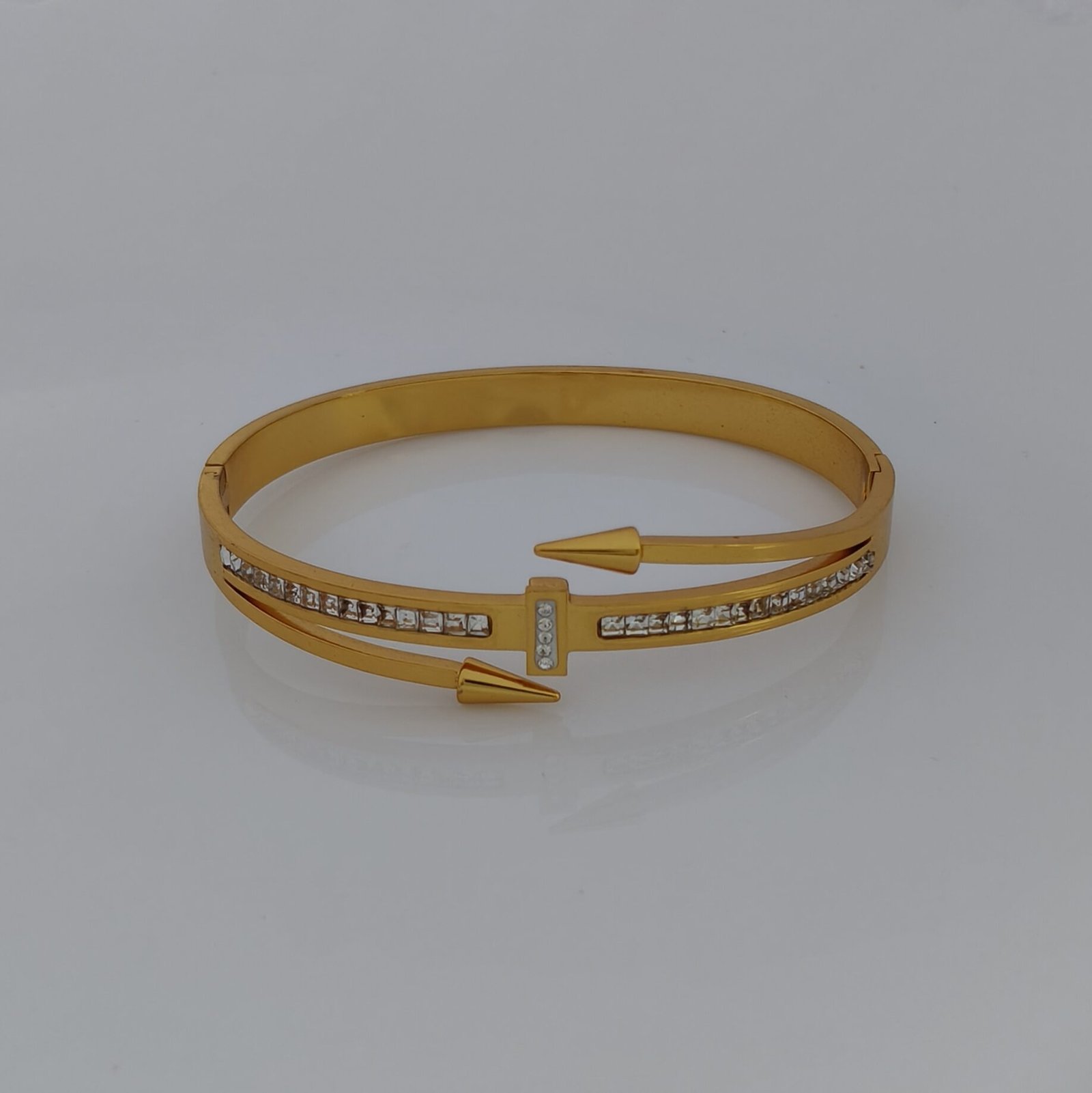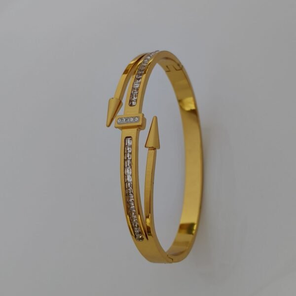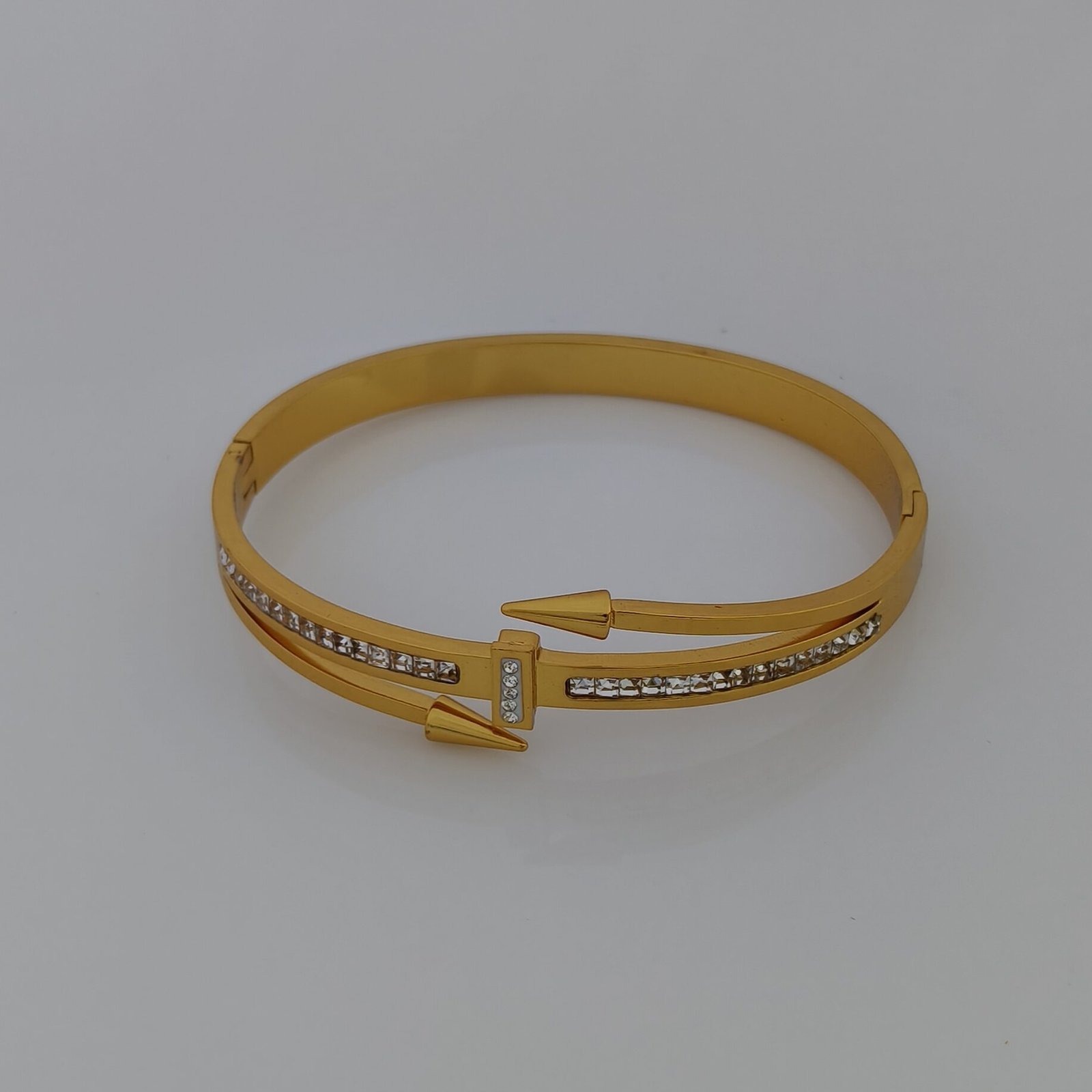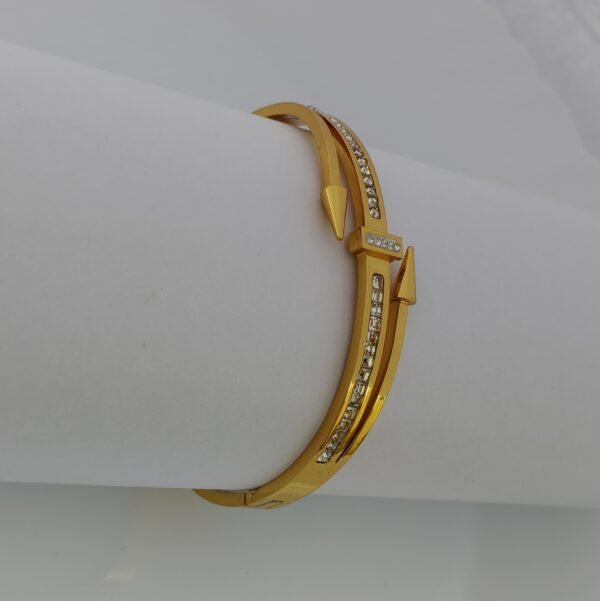 This anti-tarnish bracelet features a radiant gold-tone finish with an elegant arrowhead design, symbolizing style and strength. Crafted with high-quality, skin-safe materials, it promises a long-lasting shine without tarnishing.