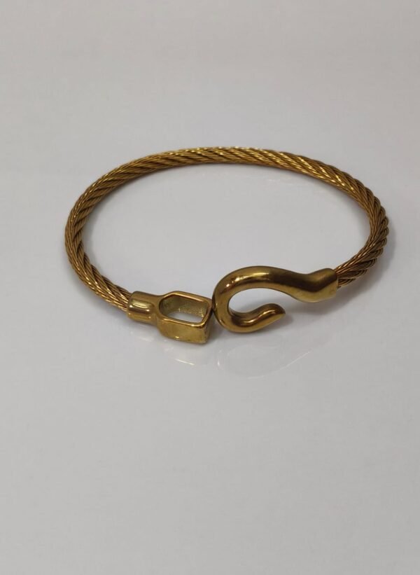 This elegant anti-tarnish bracelet combines strength, style, and sophistication in one piece. Featuring a premium twisted cable design paired with a bold hook-style clasp, it creates a statement look that’s both modern and timeless. The gold-toned finish ensures a luxurious appeal, while the anti-tarnish coating guarantees long-lasting shine. Whether worn daily or on special occasions, this bracelet adds effortless charm to your personality.