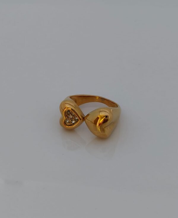 Celebrate eternal love with the Forever U Ring, a stunning piece crafted in a rich gold-tone finish. Designed with a unique dual-heart motif, one heart sparkles with embedded crystals while the other shines with a sleek, polished surface—symbolizing the perfect balance of love and unity. This romantic design makes it an ideal gift for someone special or a timeless addition to your personal collection.