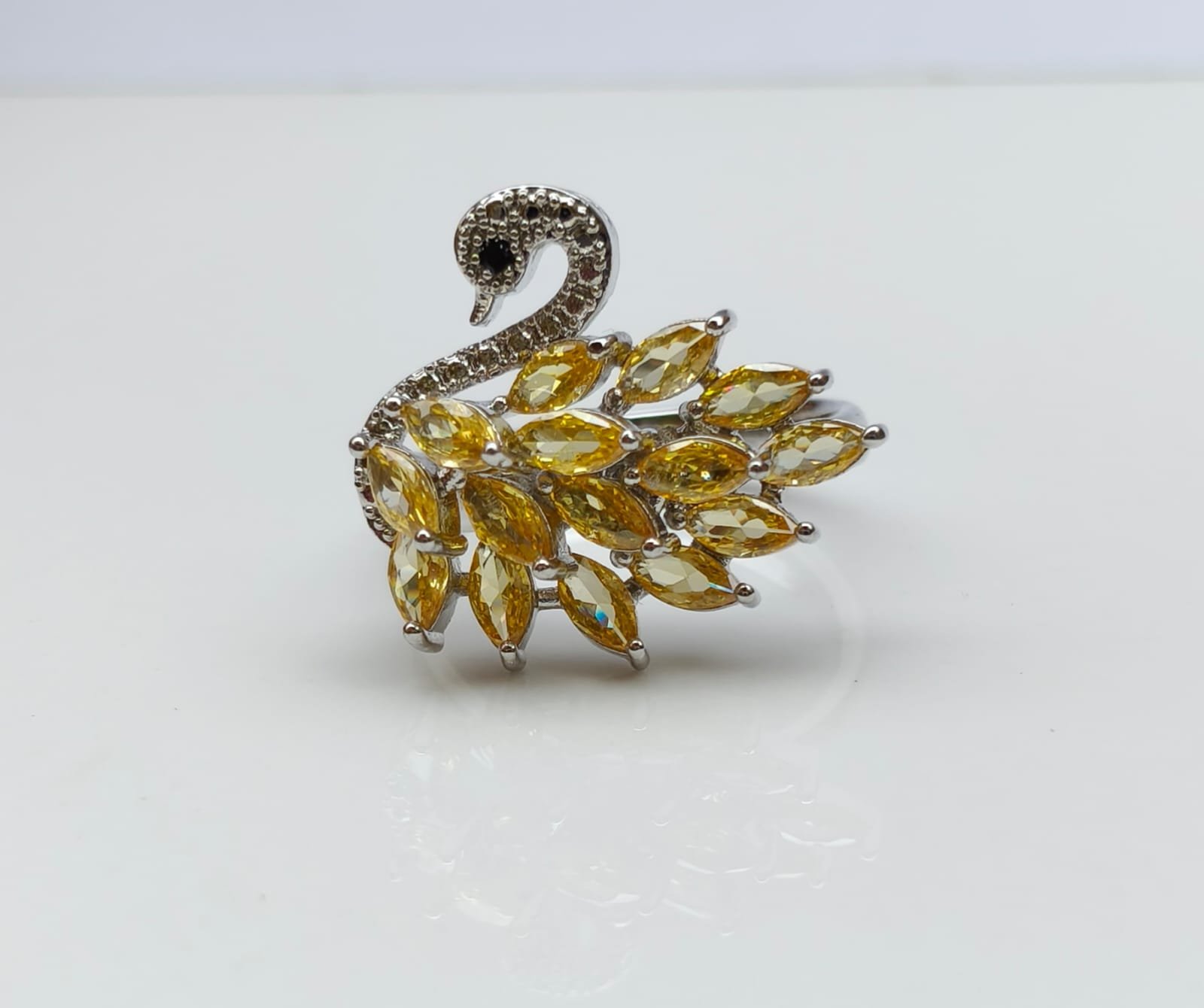 Add a touch of royalty to your style with the Golden Radiance Swan Ring, crafted in an elegant swan motif. Its body is adorned with sparkling yellow marquise-cut stones, symbolizing grace, beauty, and prosperity. The detailed design with shimmering accents makes it a perfect blend of sophistication and charm, ideal for both daily wear and special occasions.