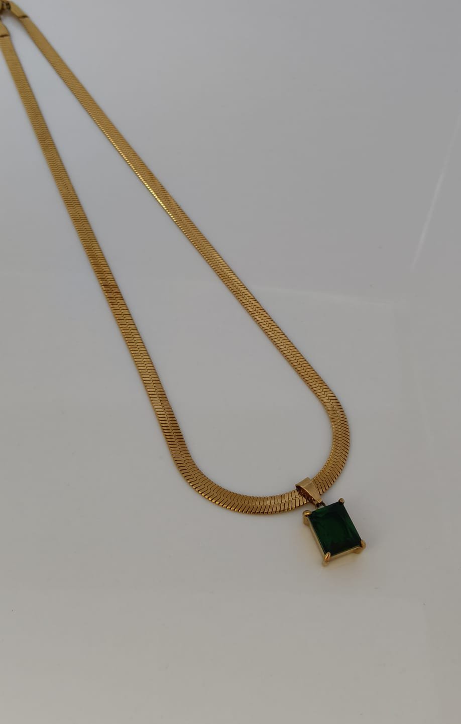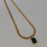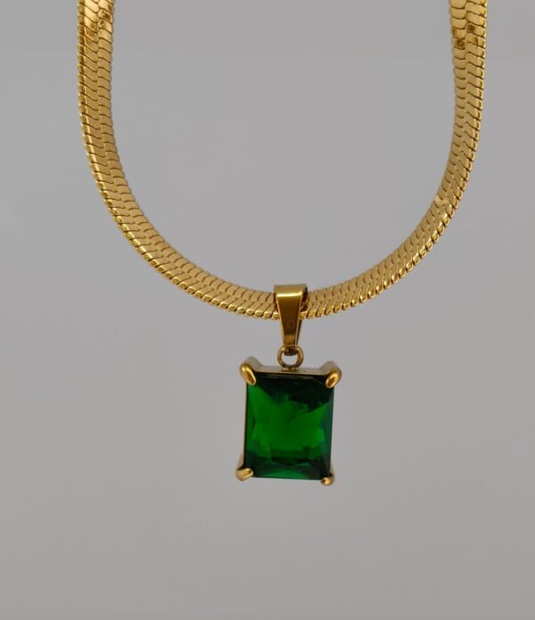 Elevate your style with this stunning gold-toned chain pendant featuring a radiant emerald-green rectangular stone. The bold yet elegant design combines a sleek snake chain with a striking solitaire-style pendant, creating a statement piece that exudes luxury and charm. Perfect for both everyday elegance and special occasions, this pendant adds a sophisticated pop of color to any outfit.