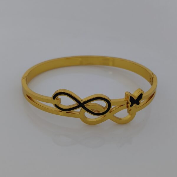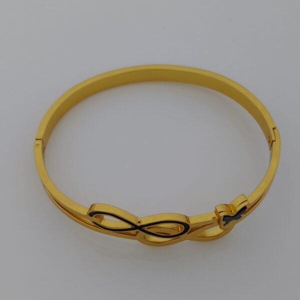 This elegant gold-toned bracelet features a striking infinity design at the center, symbolizing eternal love, strength, and endless possibilities. Accented with a sleek black enamel finish, the bracelet perfectly blends modern style with meaningful symbolism, making it a versatile accessory for everyday wear or special occasions.