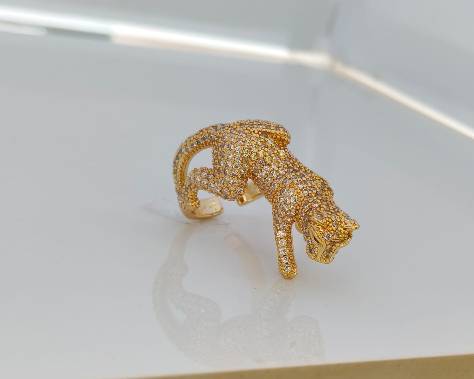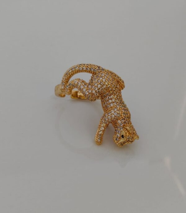 Unleash your bold spirit with this majestic Panther Ring, exquisitely crafted in a luxurious gold finish and encrusted with shimmering stones. Designed in the form of a prowling panther, it symbolizes power, confidence, and elegance. A perfect statement accessory, this ring is an embodiment of strength and grace, making it an ideal pick for those who love to stand out.
