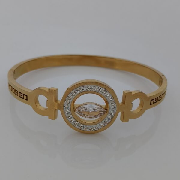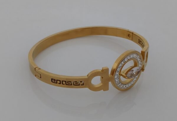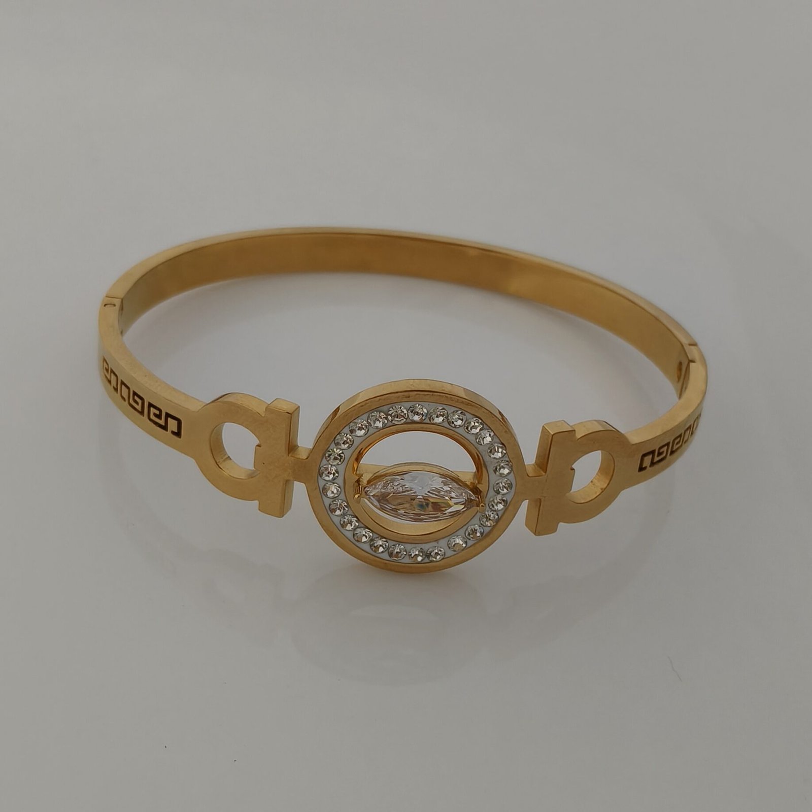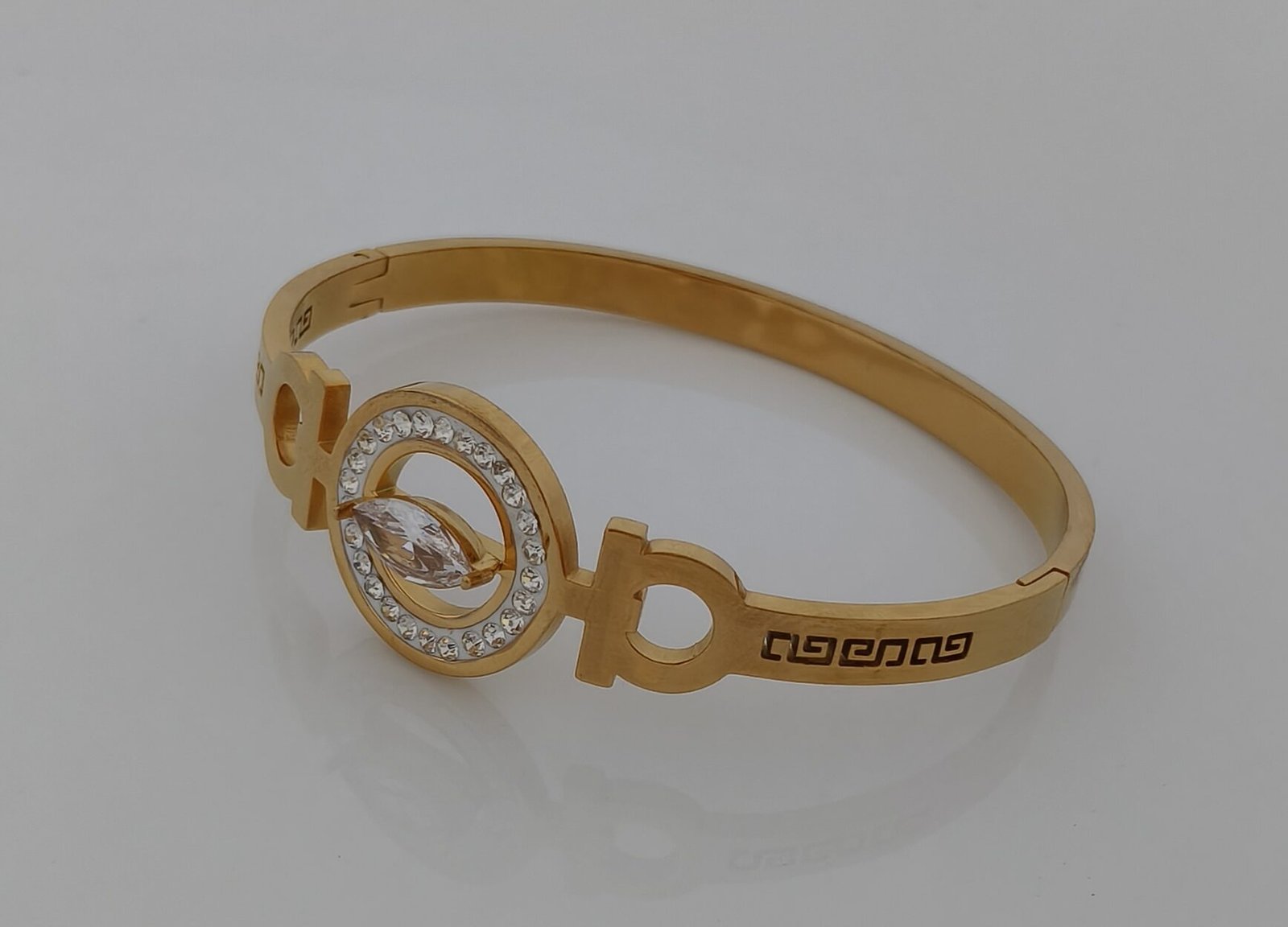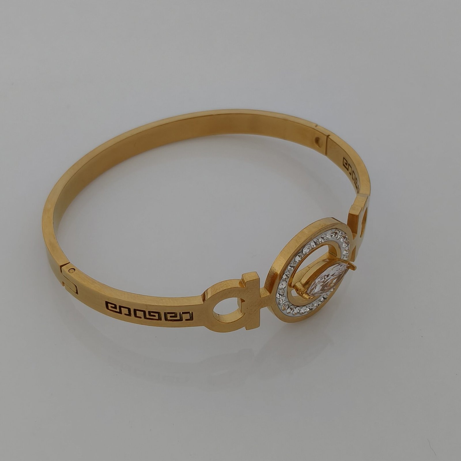 Unveil your inner royalty with the Royal Halo Bracelet — a luxurious bangle designed to captivate. This masterpiece pairs rich gold tones with a futuristic circular halo clasp, symbolizing strength and eternity.