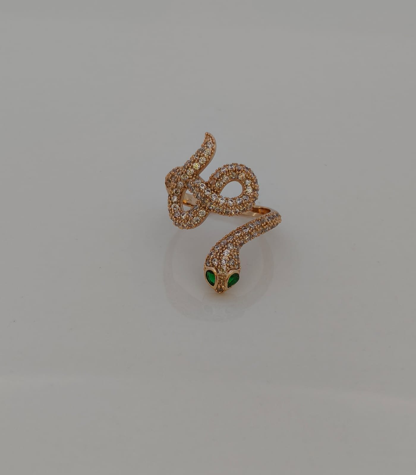 Enchanting Green Eyes: Snake head accented with vivid green stones that create a bold focal point.