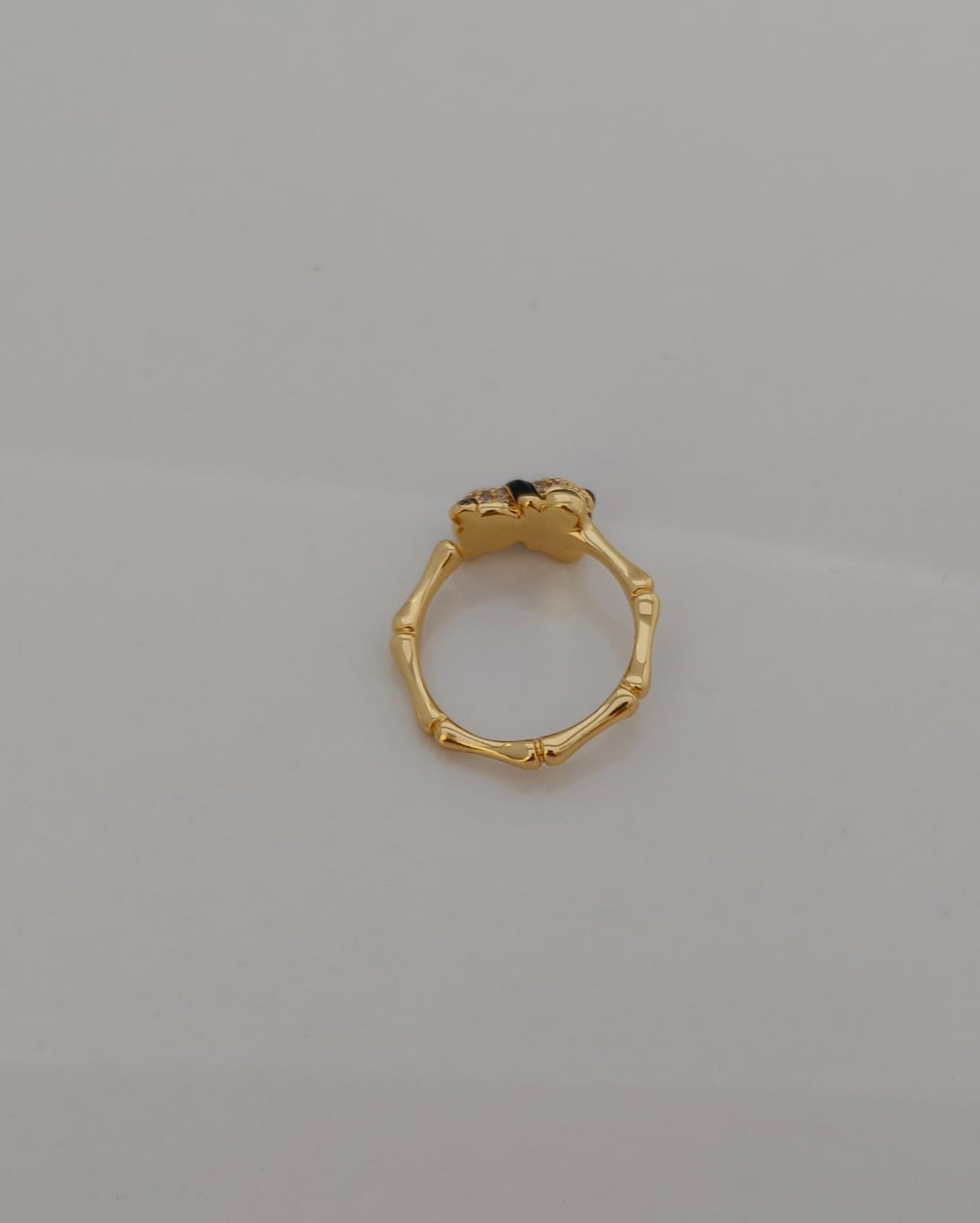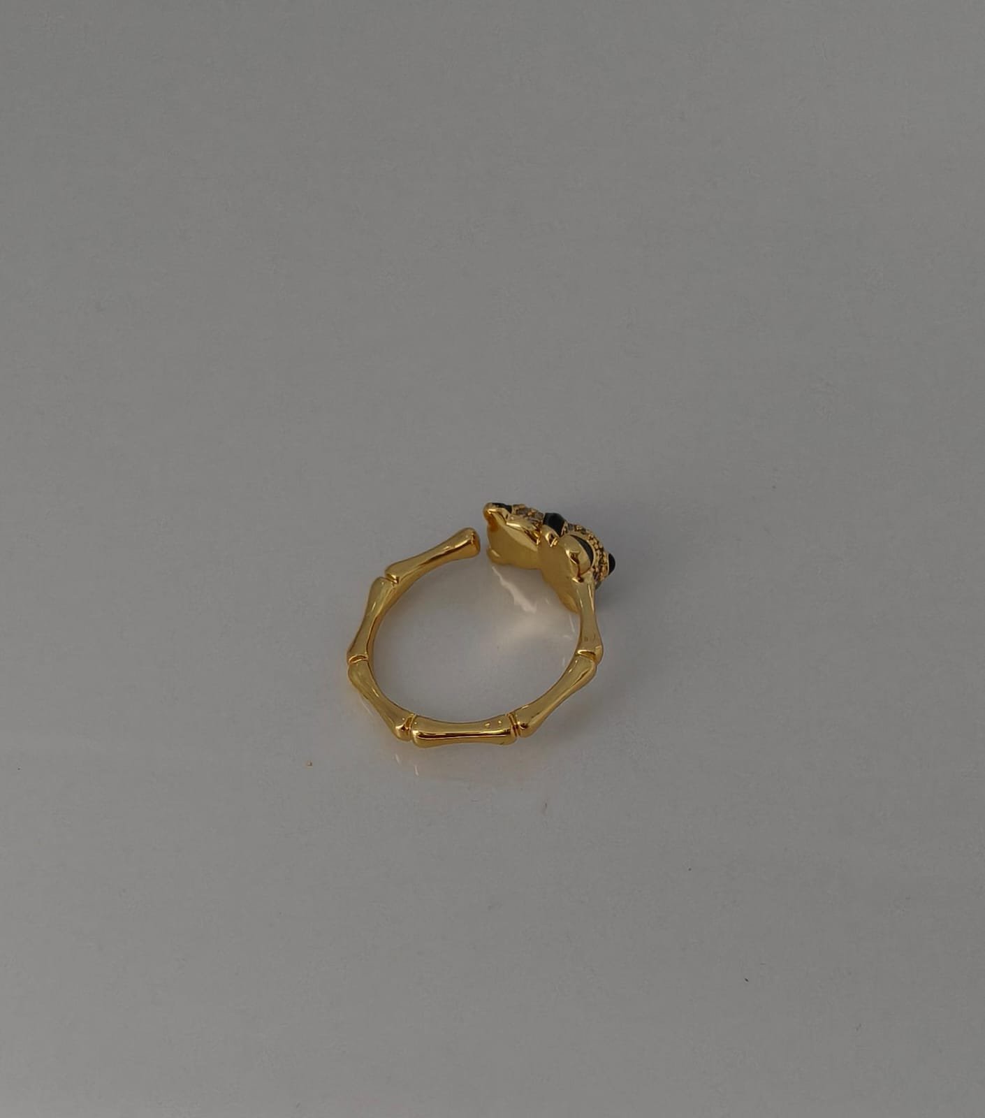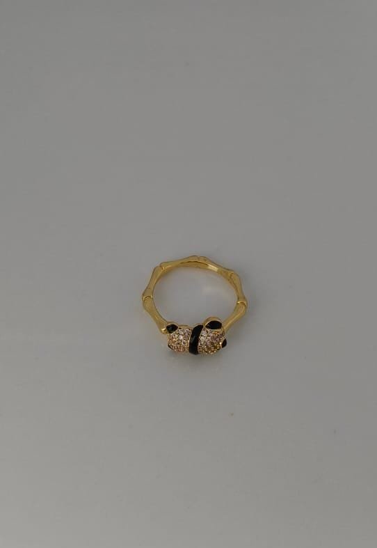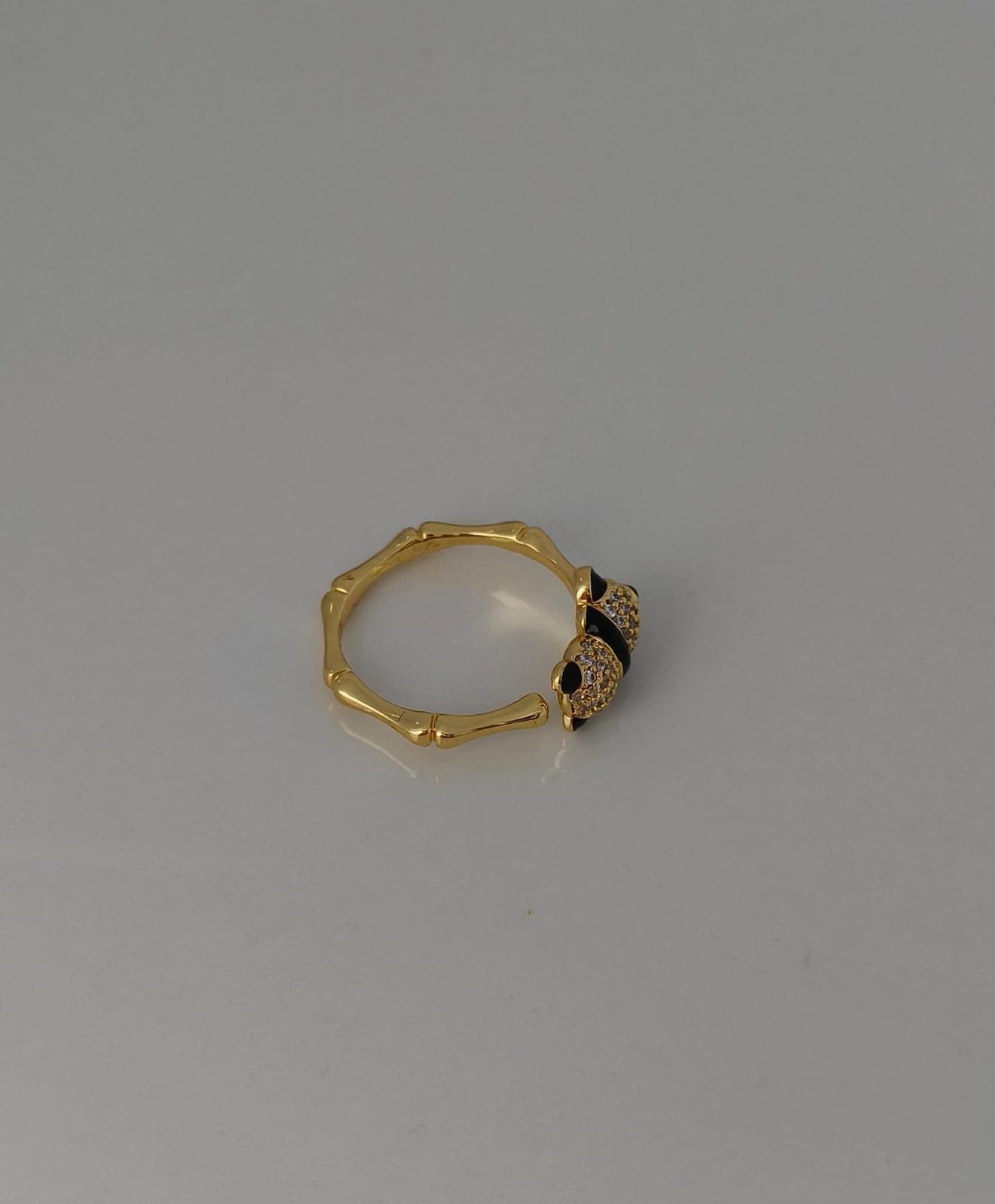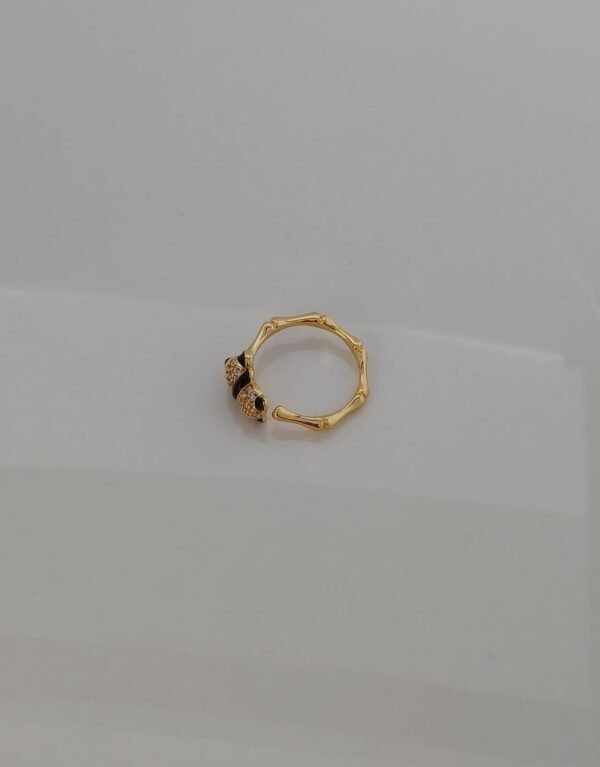 The Twinkle Panda Ring is a charming blend of cuteness and elegance. Designed with twin panda heads facing each other, it sparkles with finely set stones and striking black enamel accents. The gold-toned textured band adds a modern touch, making it a delightful piece for panda lovers and those who adore unique jewelry styles. This ring is perfect for adding a playful yet classy vibe to any outfit.